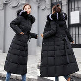 2025 Winter Women's Jacket Warm Fashion Comfortable Bow Belt Fox Fur Collar Clothes Long Dress Office Casual Women's Thick Coat