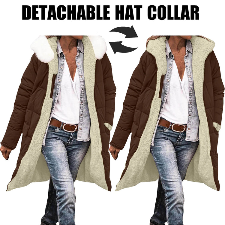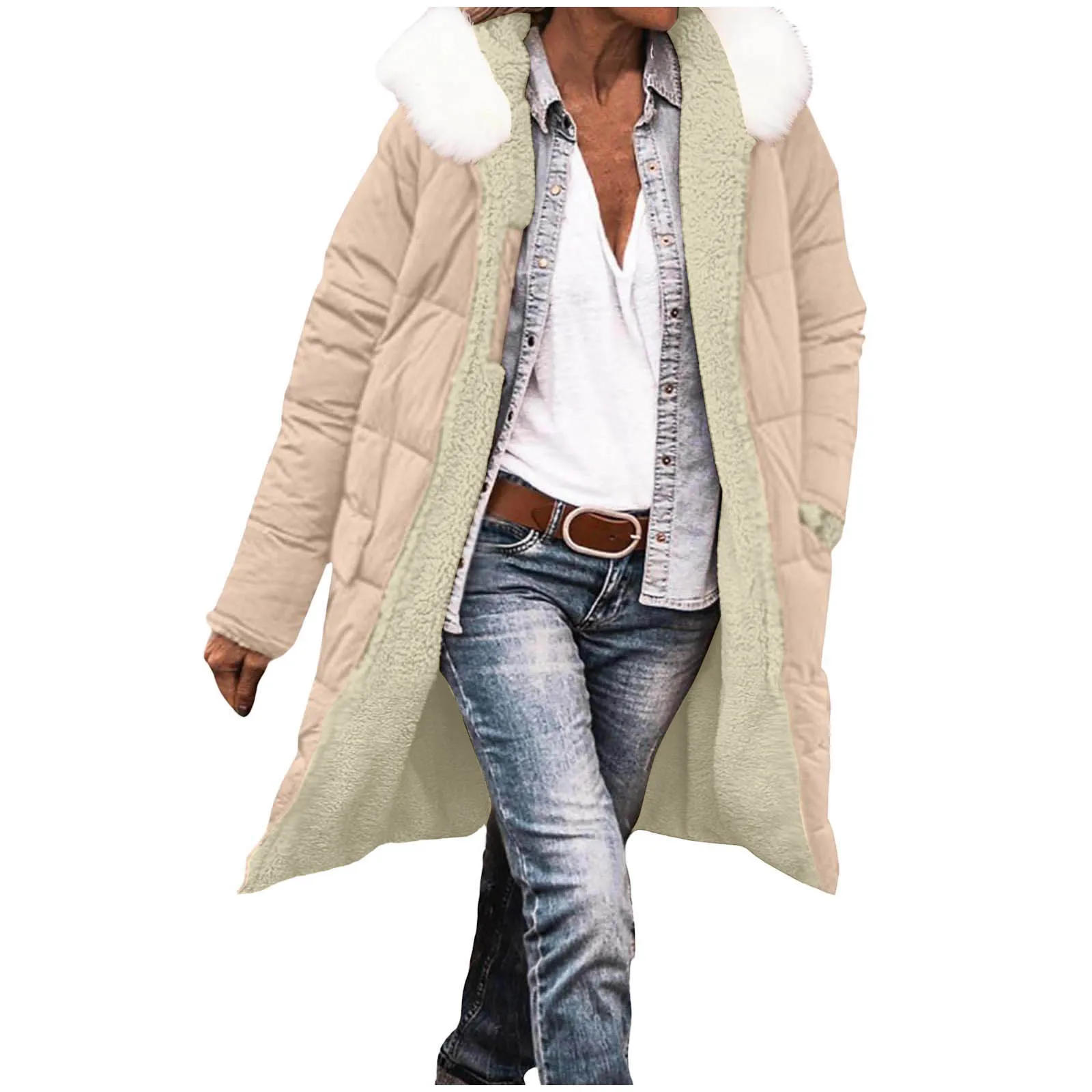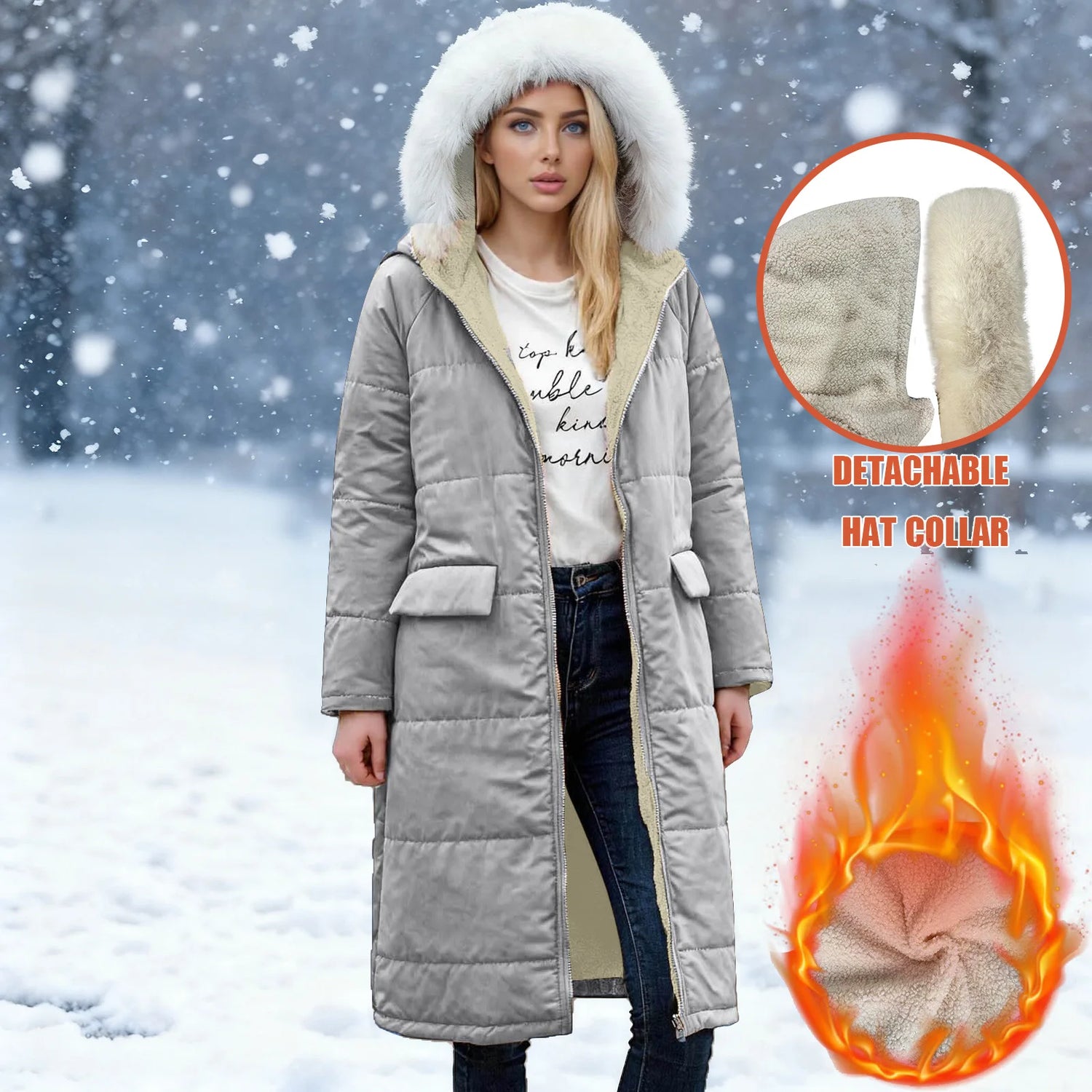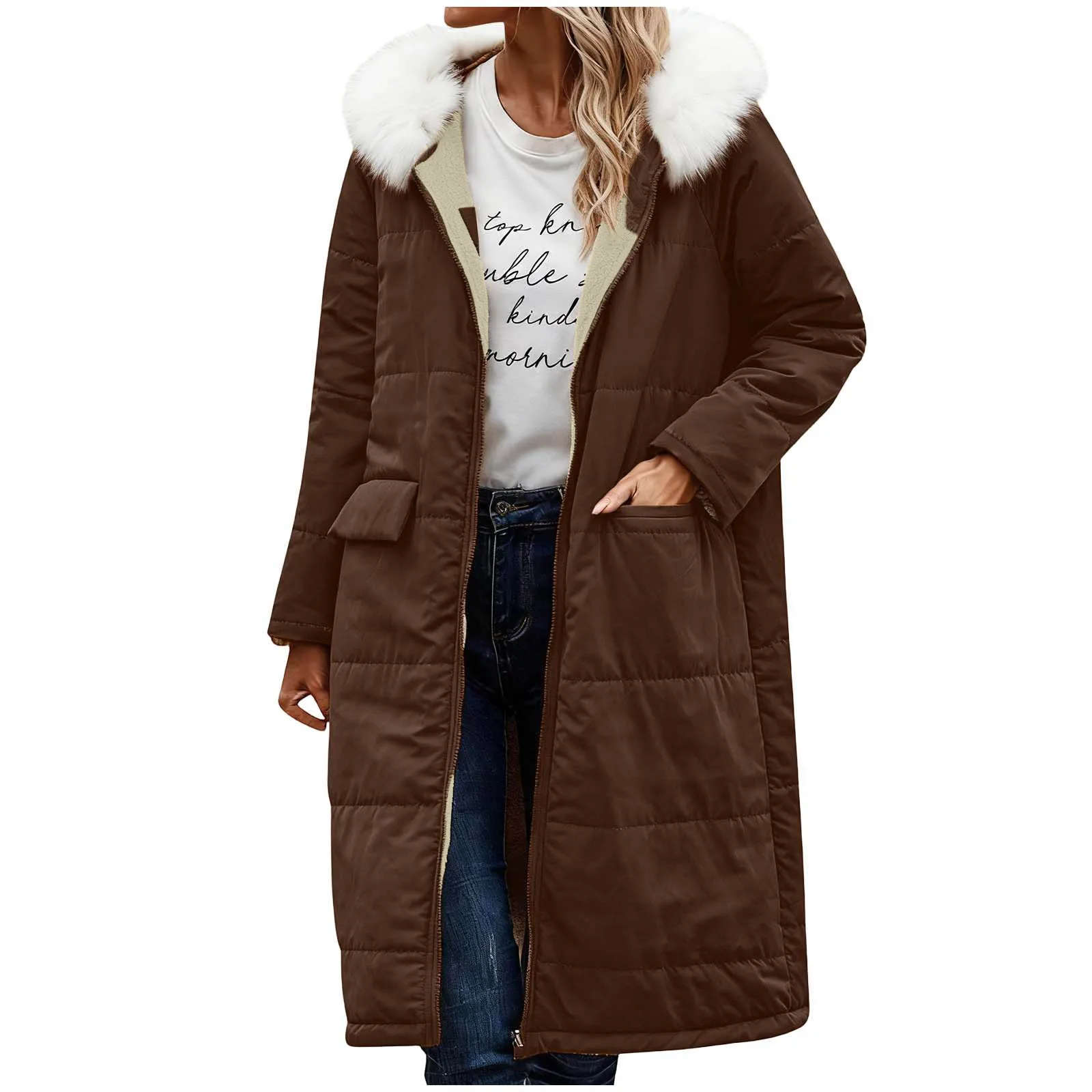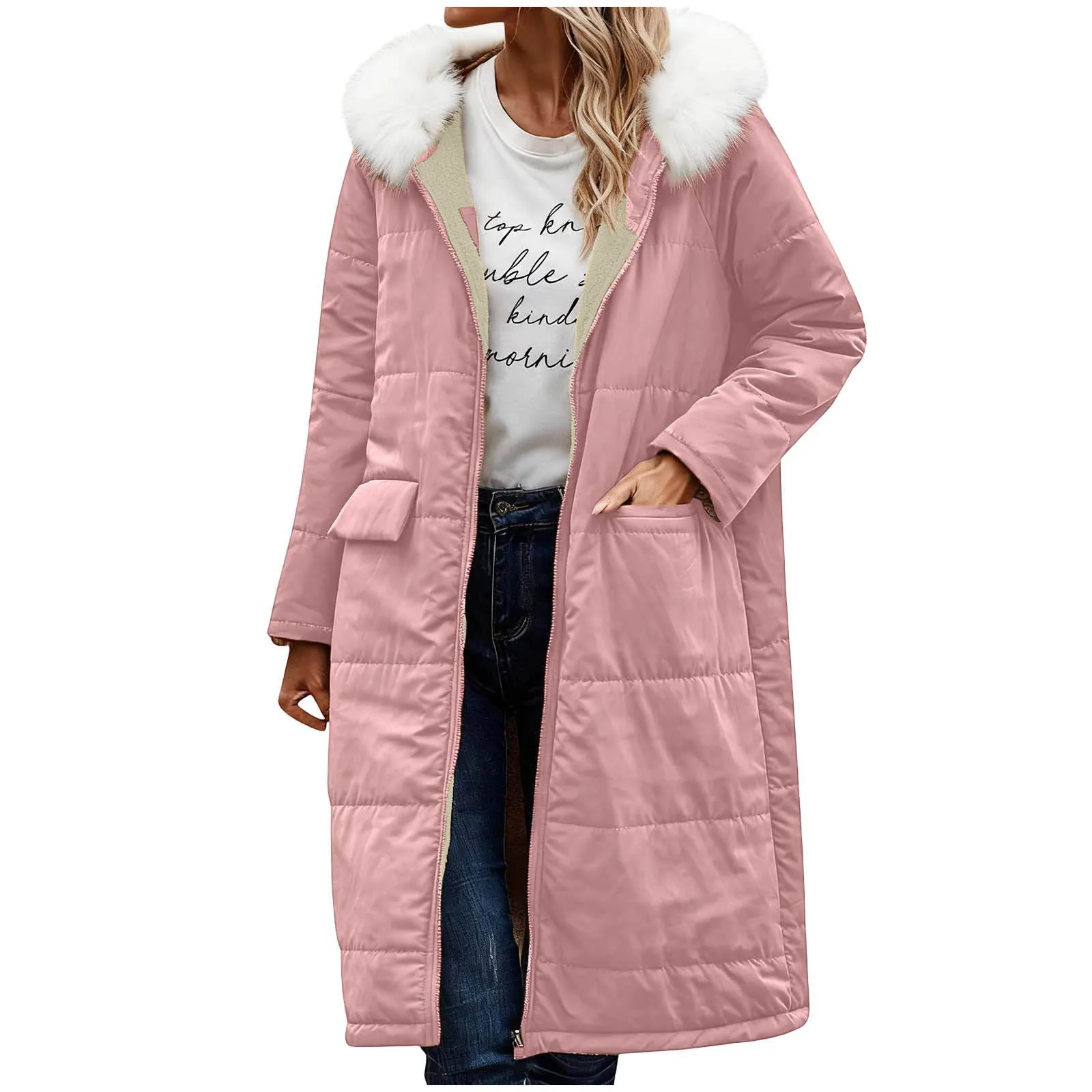 Hairy collar Women's 2025 Warm Winter Coats Reversible Sherpa Fleece Long Hooded Puffer Jackets Outerwear