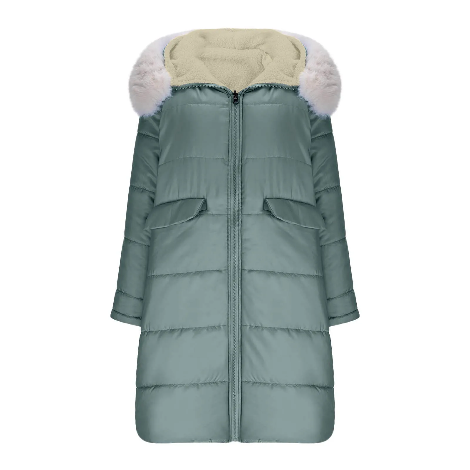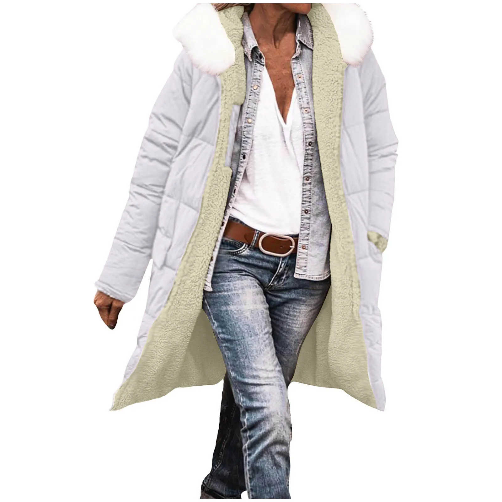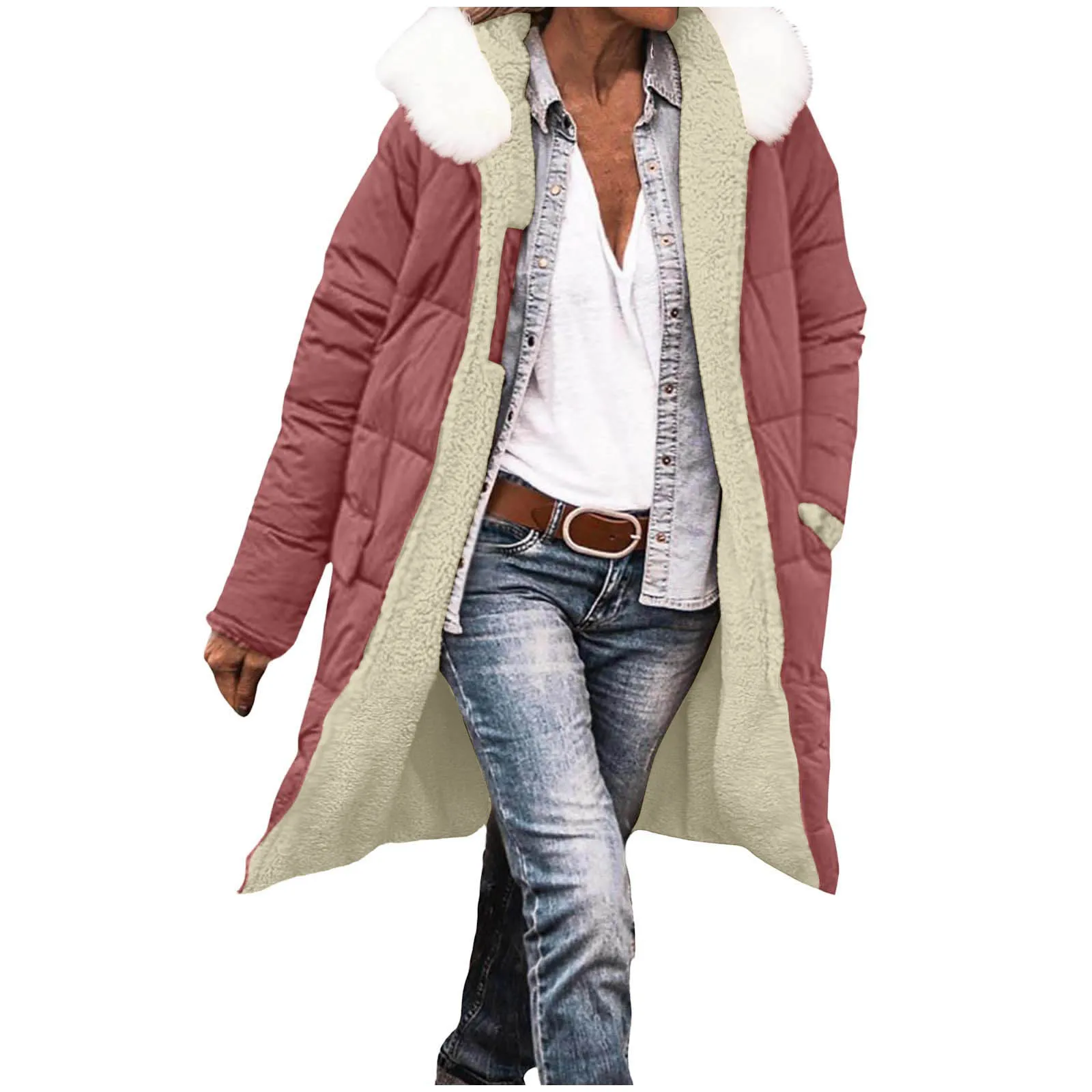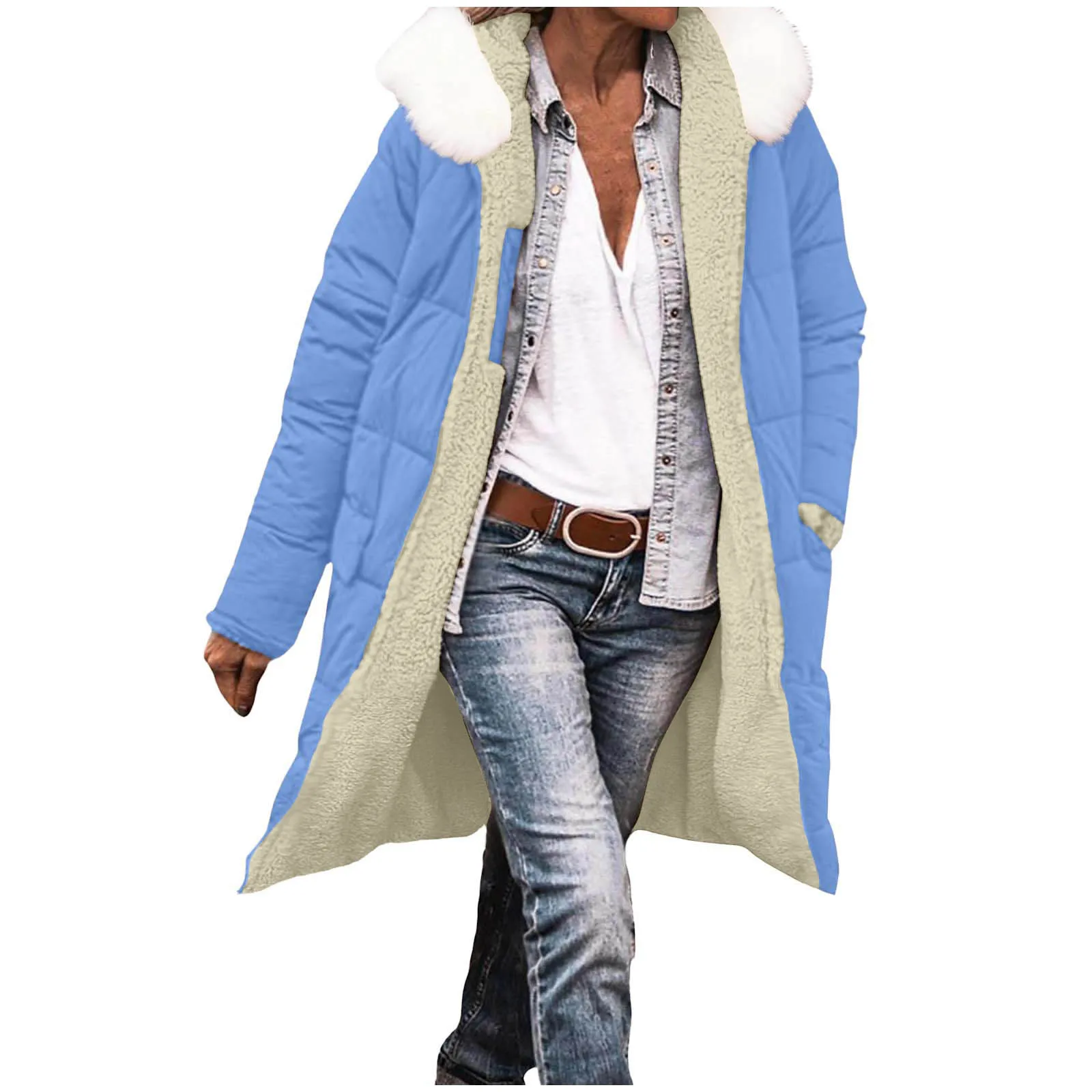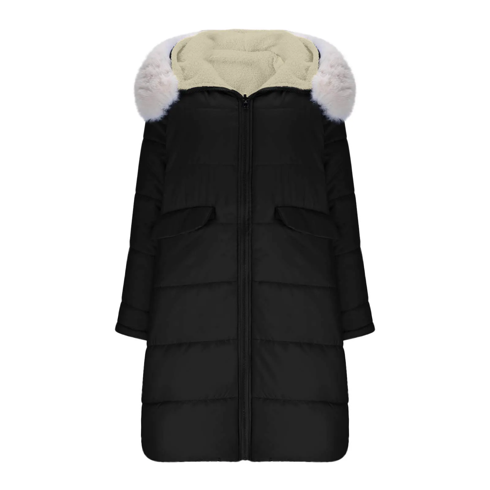 Hairy collar Women's 2025 Warm Winter Coats Reversible Sherpa Fleece Long Hooded Puffer Jackets Outerwear