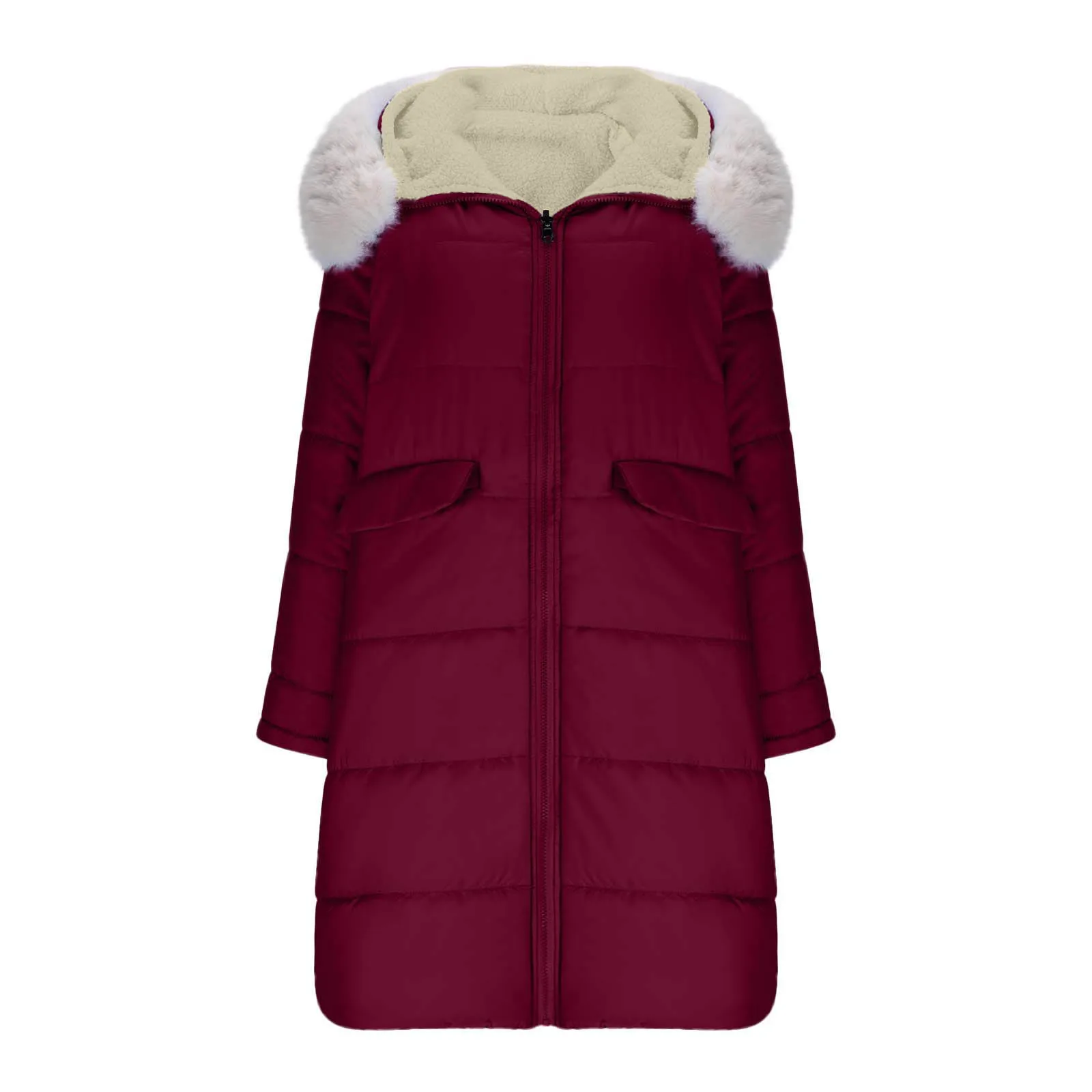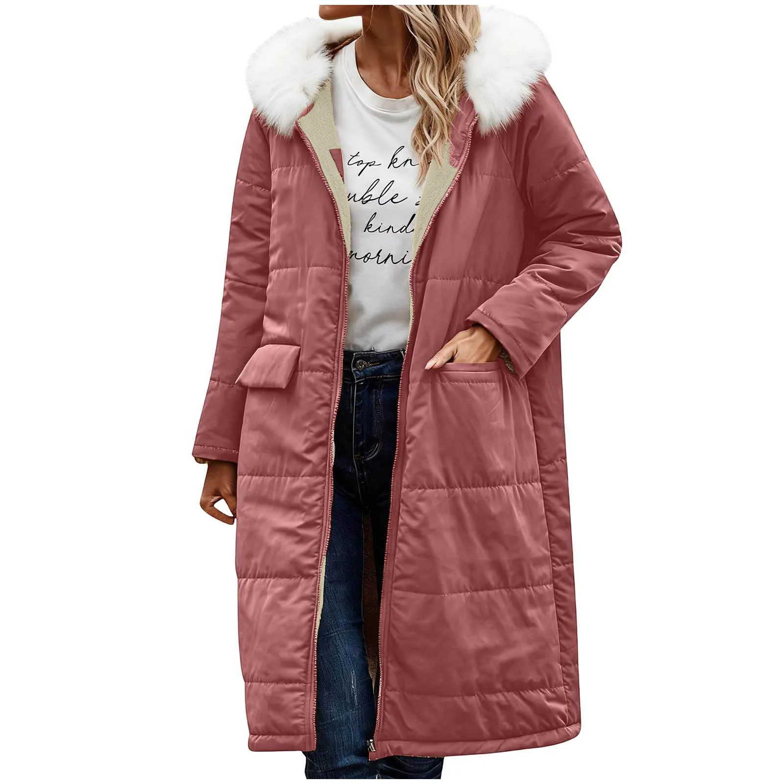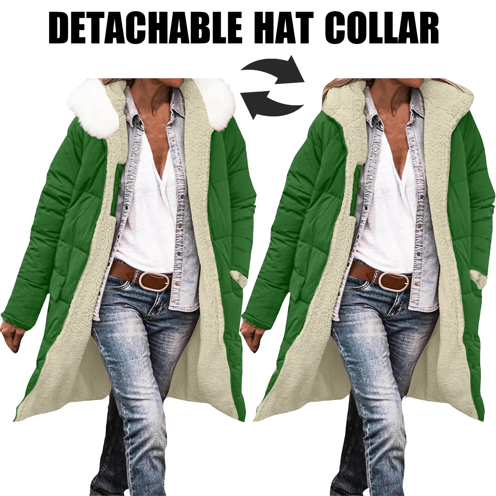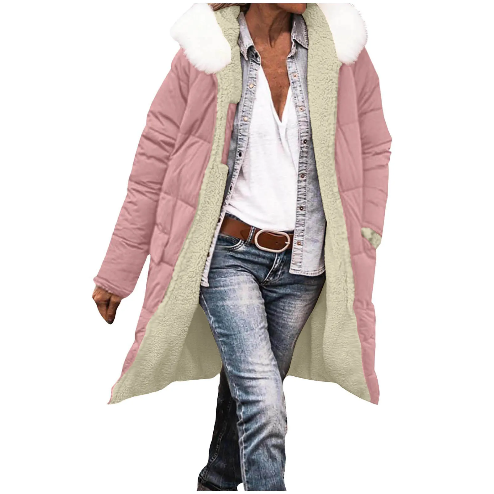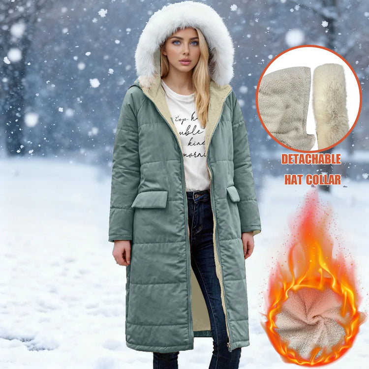 Hairy collar Women's 2025 Warm Winter Coats Reversible Sherpa Fleece Long Hooded Puffer Jackets Outerwear