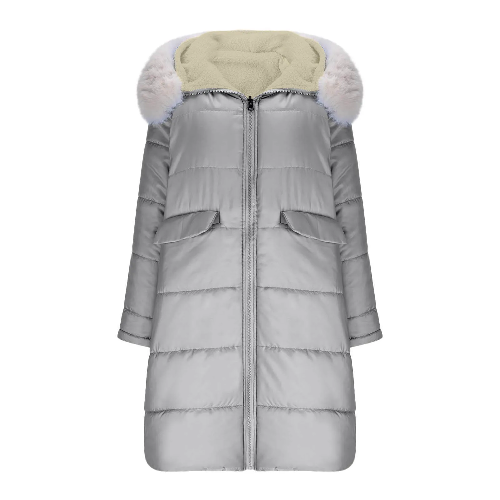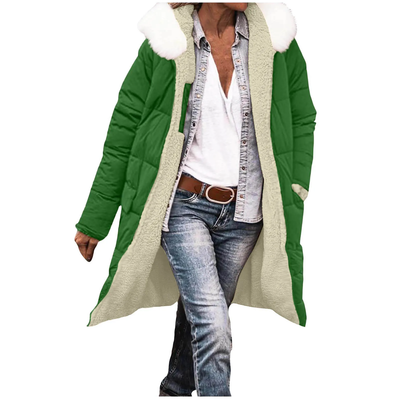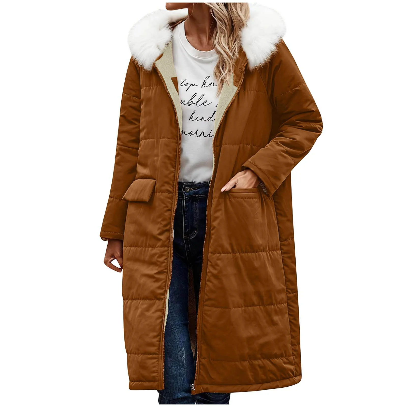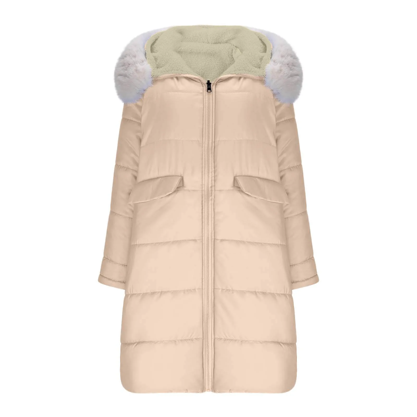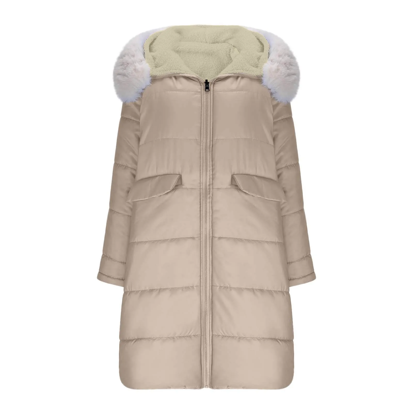 Hairy collar Women's 2025 Warm Winter Coats Reversible Sherpa Fleece Long Hooded Puffer Jackets Outerwear