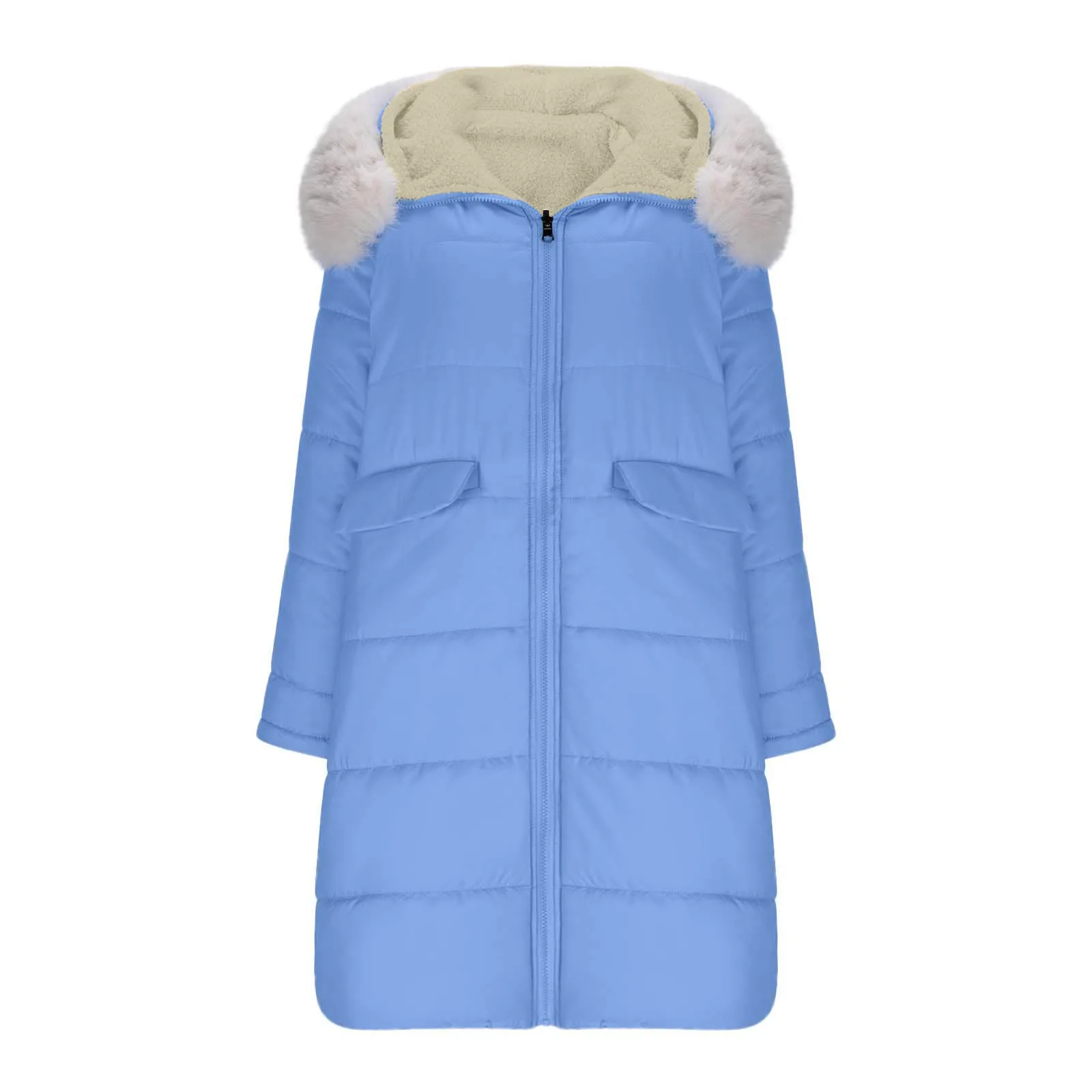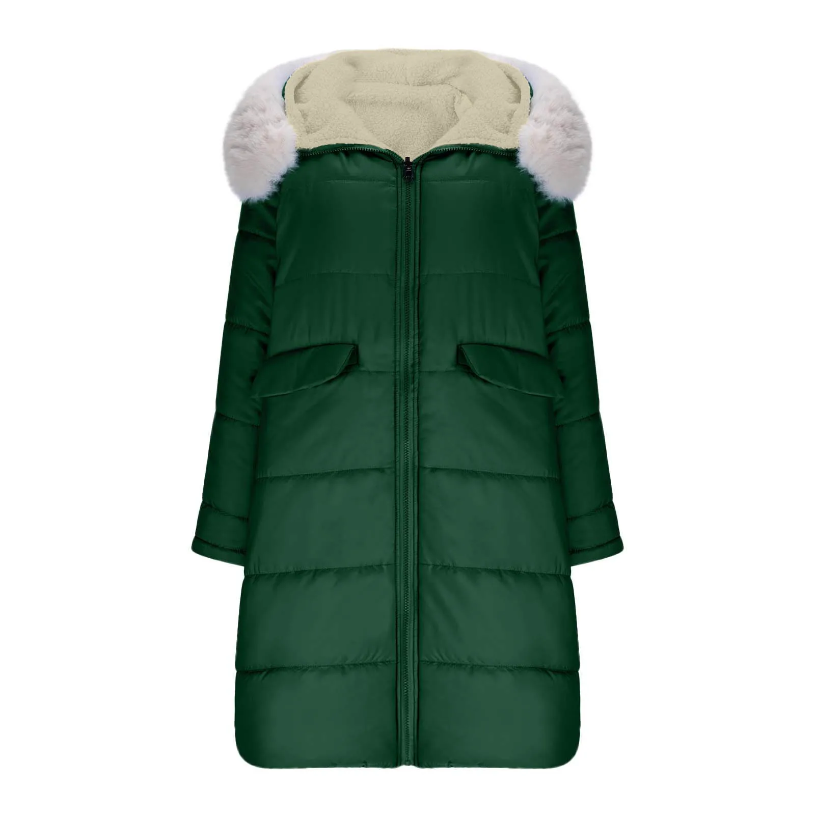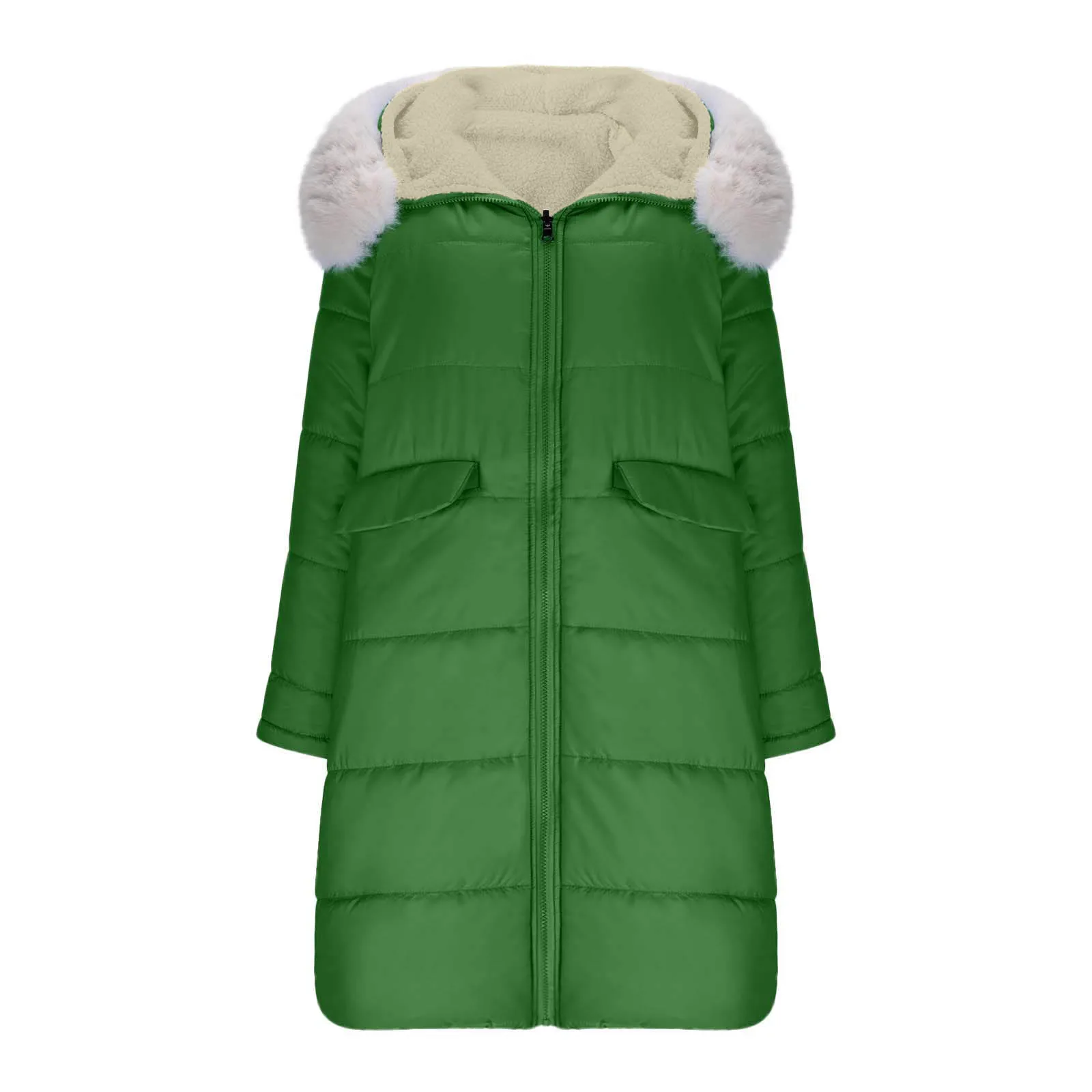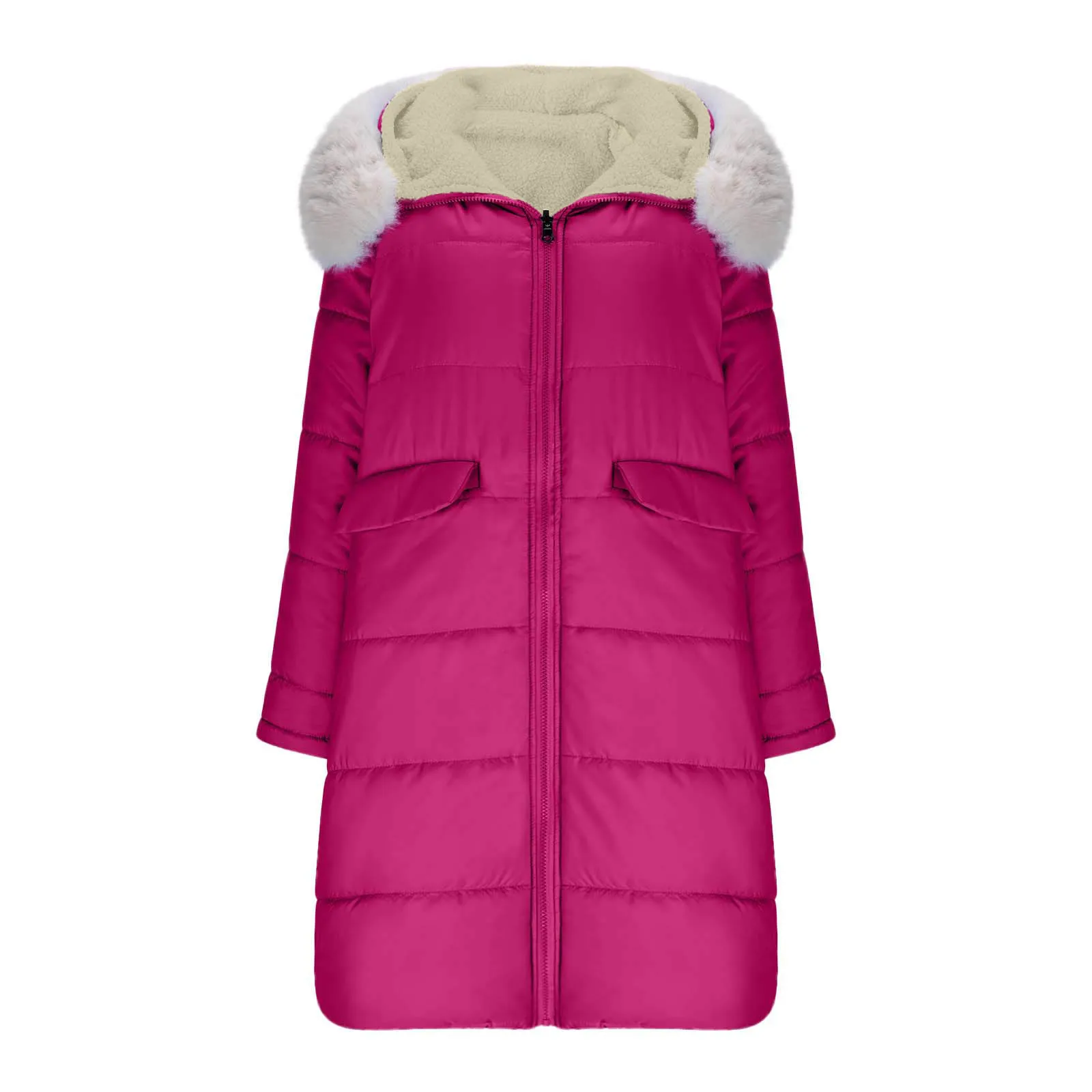 Hairy collar Women's 2025 Warm Winter Coats Reversible Sherpa Fleece Long Hooded Puffer Jackets Outerwear