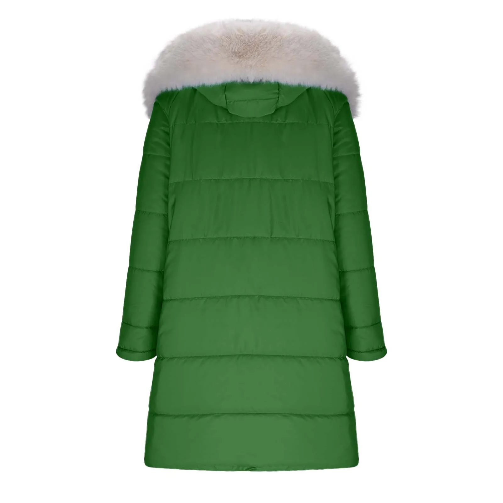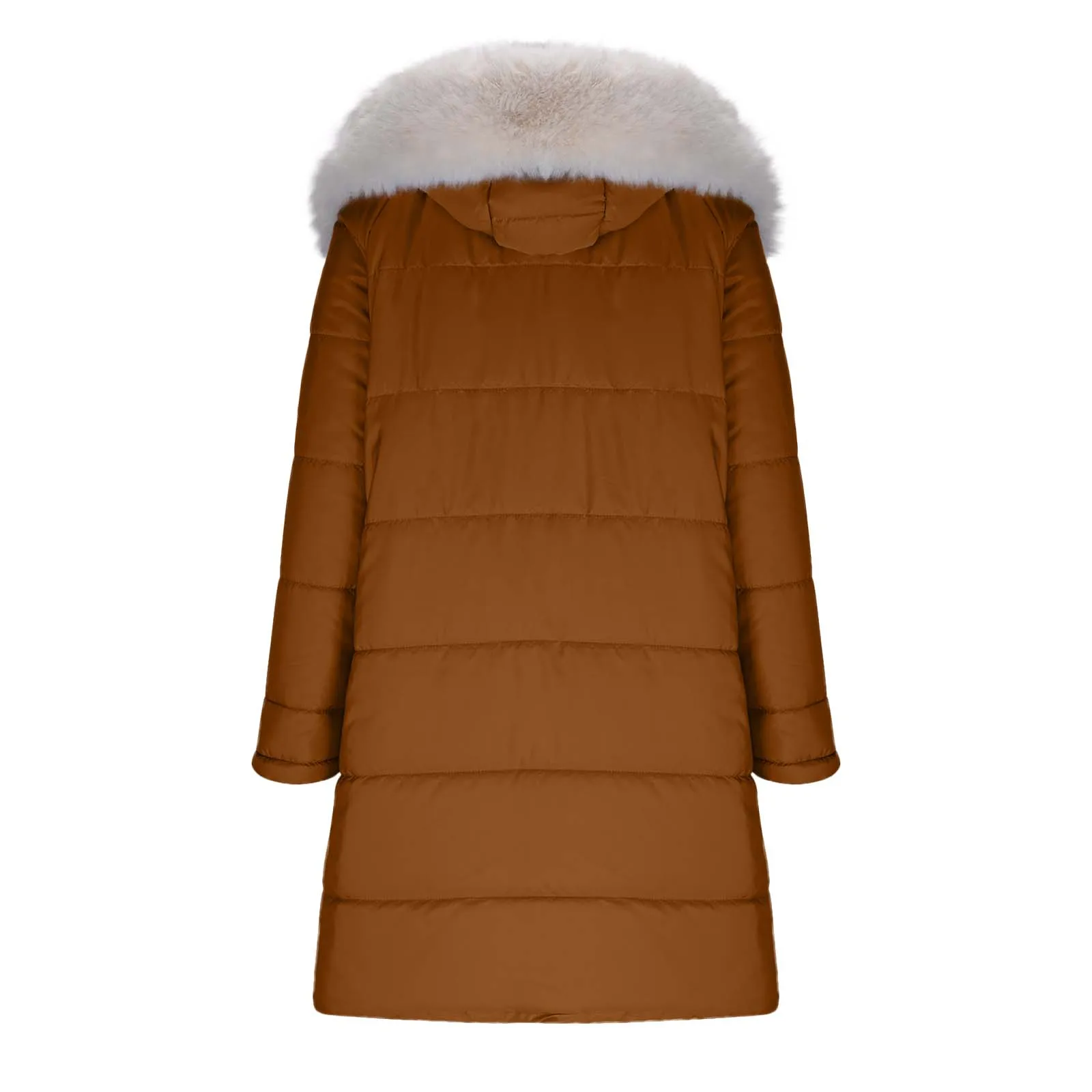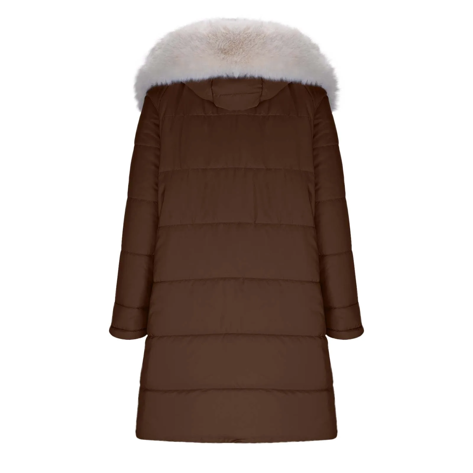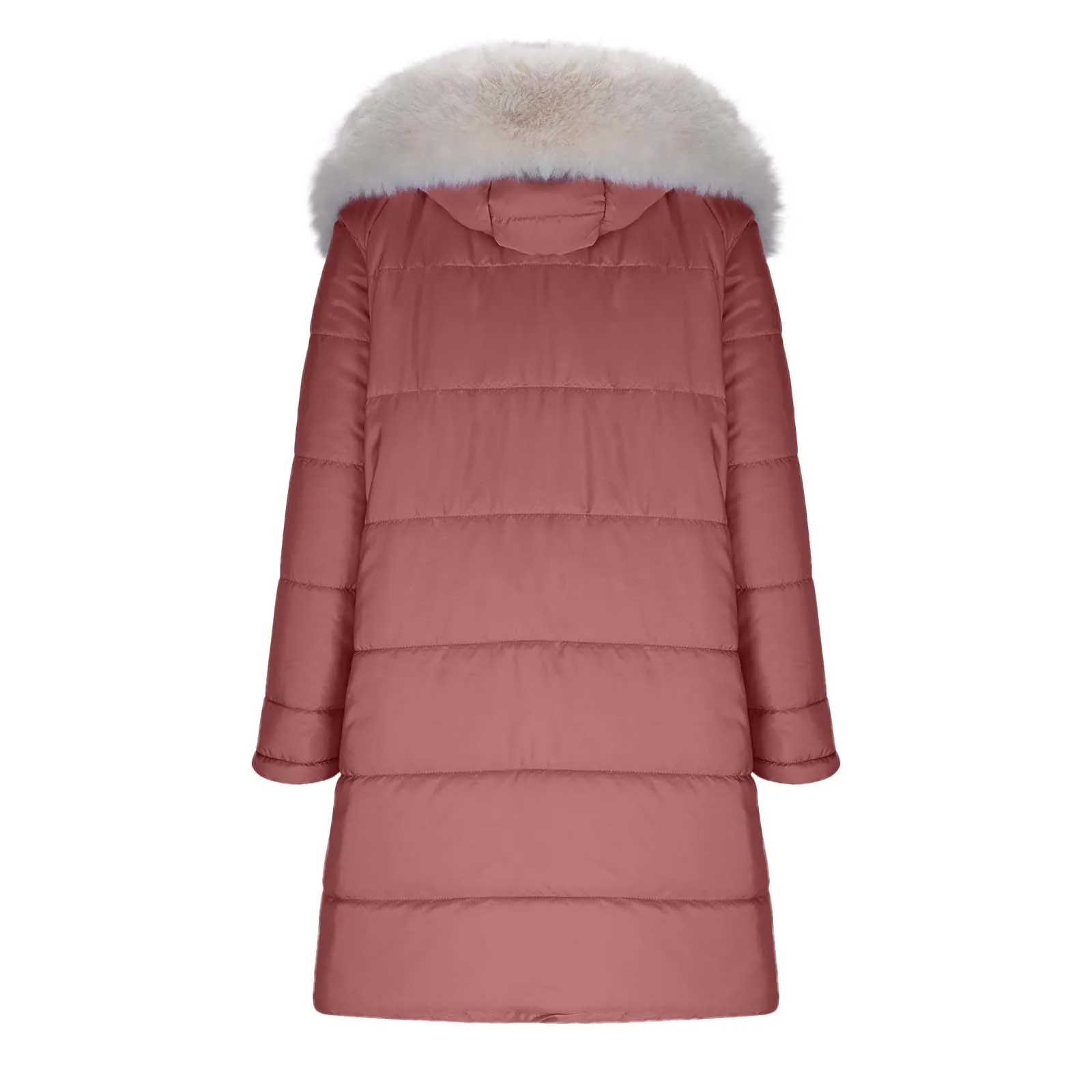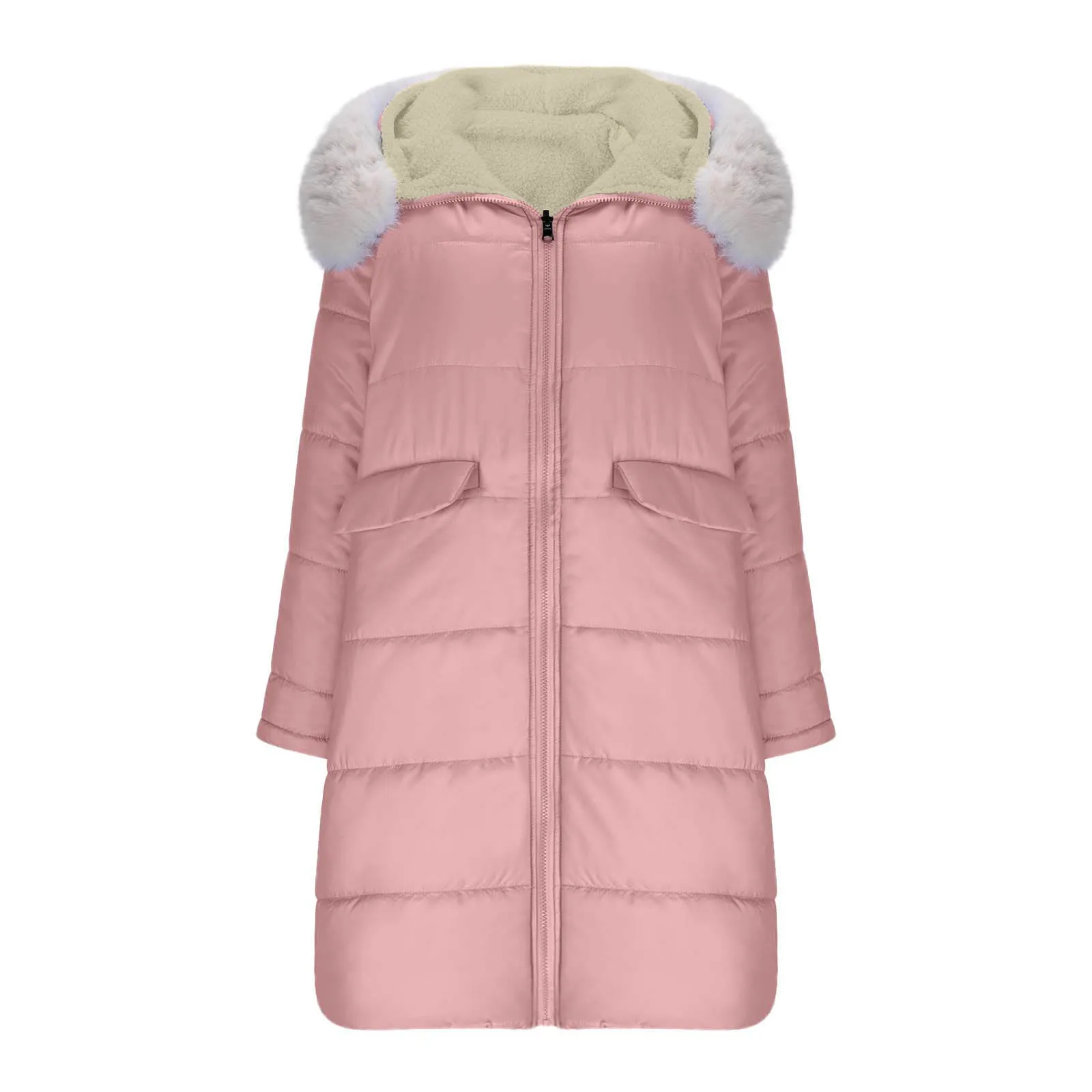 Hairy collar Women's 2025 Warm Winter Coats Reversible Sherpa Fleece Long Hooded Puffer Jackets Outerwear