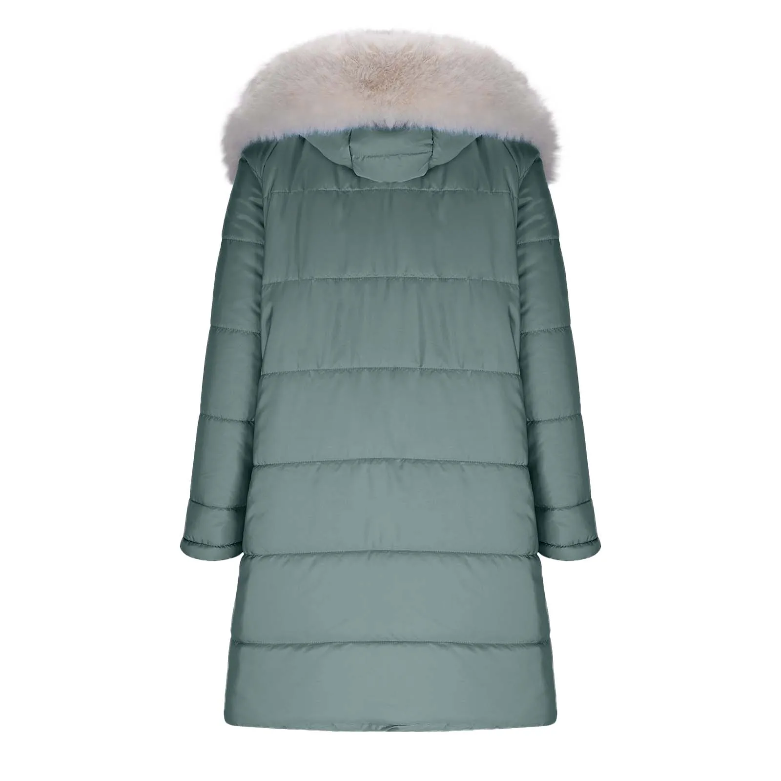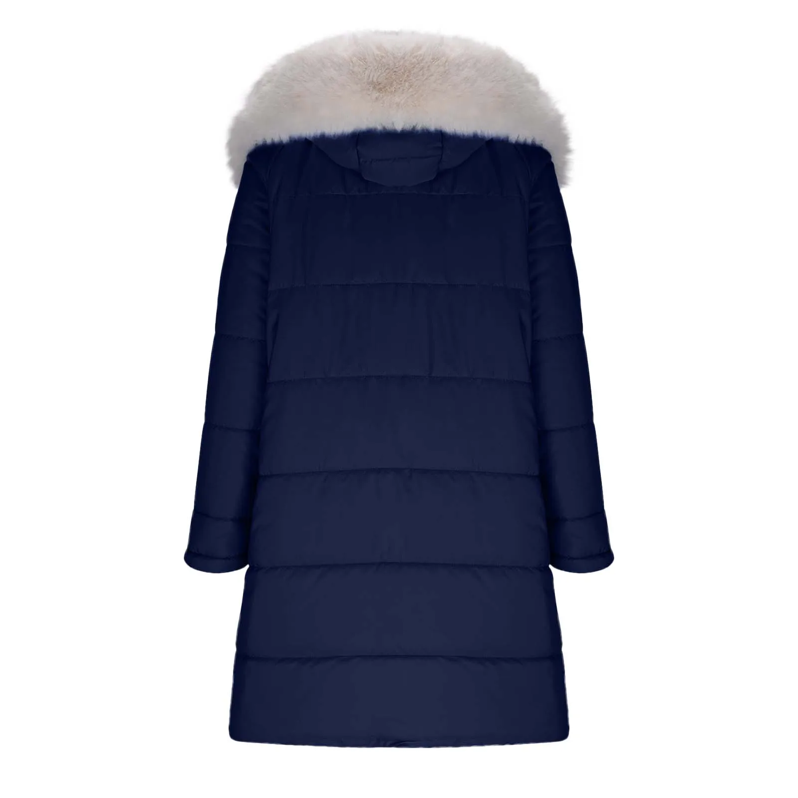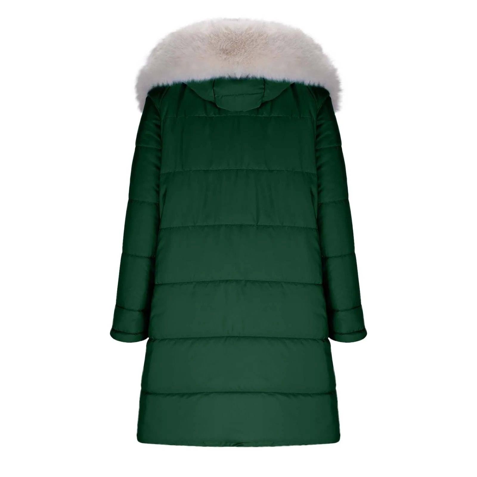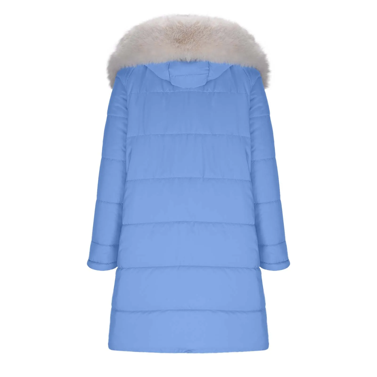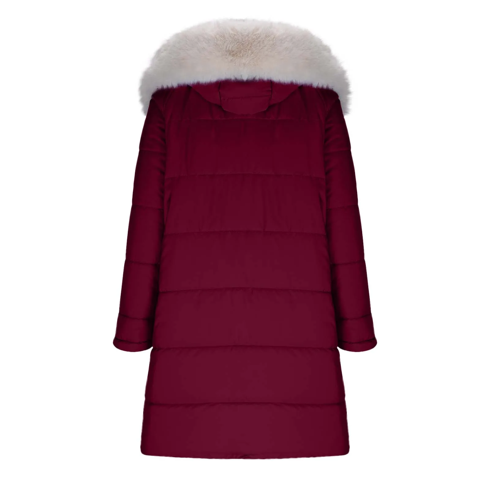Hairy collar Women's 2025 Warm Winter Coats Reversible Sherpa Fleece Long Hooded Puffer Jackets Outerwear