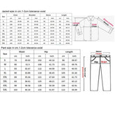 Jacket size chart in cm,1-2cm tolerance exist