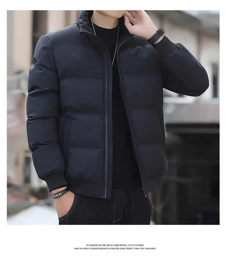 Men's Lightweight Warm Jacket Standing Collar Casual Horizontal Stripe down Winter Outerwear Windbreaker Thick Parkas M-5XL